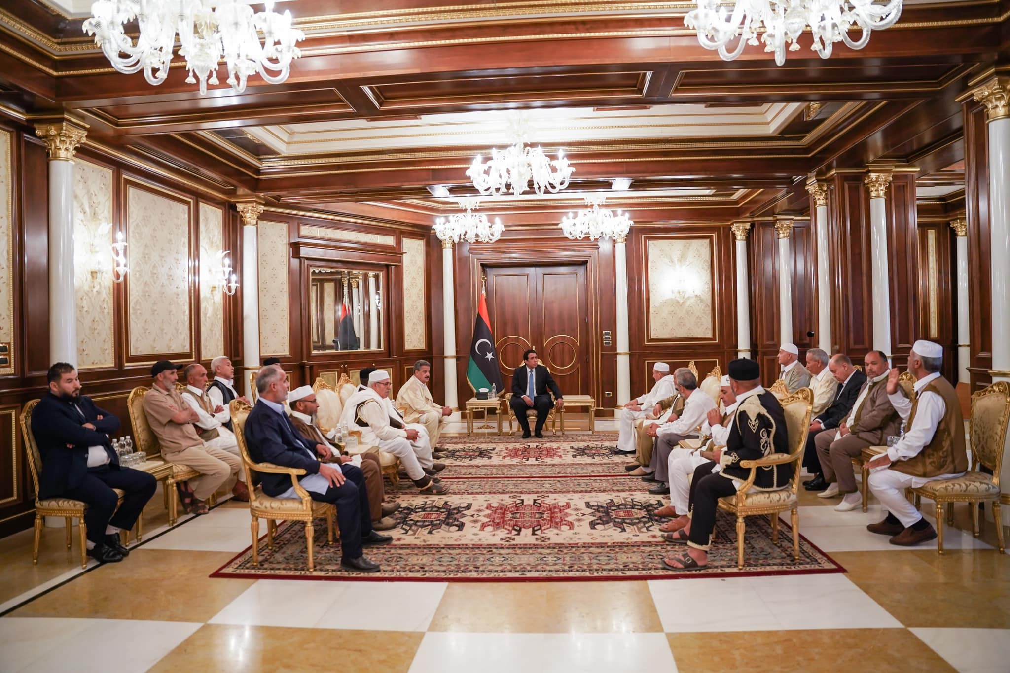 التقى رئيس المجلس الرئاسي ” محمد المنفي ” اليوم الأربعاء بطرابلس ، أعيان ومشائخ قبائل الحميدات .