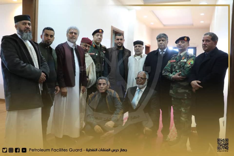 أستقبل رئيس جهاز حرس المنشآت النفطية العميد علي امحمد الديب وفد المصالحة الوطنية عن المنطقة الجنوبية على رأسهم السيد/ يوسف هبؤ والشرقية على رأسهم الشيخ/علي خليفة العقوري والغربية على رأسهم الشيخ/ أحمد غربية، رفقة عضو مجلس النواب عن الجنوب السيدة/ فاطمة الصويعي والذين قدموا إلى جهاز بناء على تكليف من رئيس حكومة الوحدة الوطنية السيد/ عبدالحميد الدبيبة لزيارة عدد من المؤسسات الرسمية وقد إختاروا البدء بجهاز حرس المنشآت النفطية لانه يعمل بكل المناطق الليبية وله أهمية كبيرة في المصالحة الوطنية