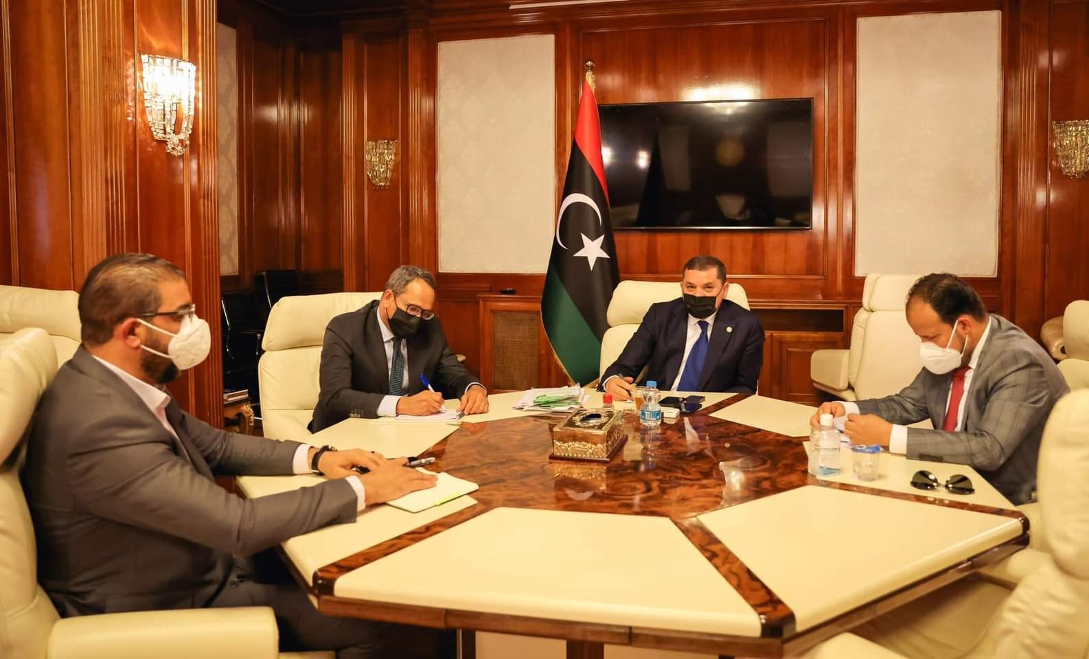 عقد رئيس حكومة الوحدة الوطنية السيد عبدالحميد الدبيبة ظهر اليوم الأربعاء اجتماعًا مع وزير الصحة السيد علي الزناتي ووكيل الوزارة للديوان والشؤون الفنية السيد سمير كوكو، بحضور وزير الدولة لشؤون مجلس الوزراء ورئيس الحكومة السيد عادل جمعة.