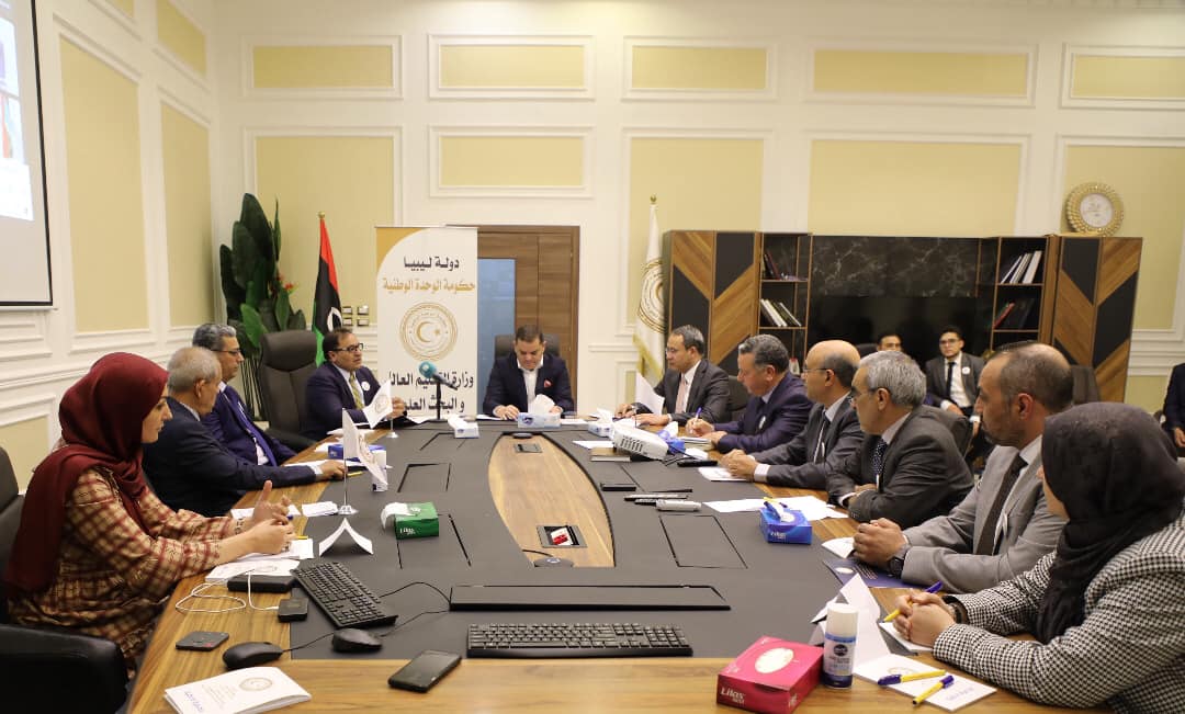 وعقد ” الدبيبة ” اجتماع مع عدد من رؤساء الجامعات عبر دائرة الاتصال التقني ، بحضور وزير التعليم العالي ، ووزير الدولة لشؤون مجلس الوزراء ورئيس جهاز تنمية وتطوير المرافق الإدارية ، ومديري الإدارات بالوزارة.