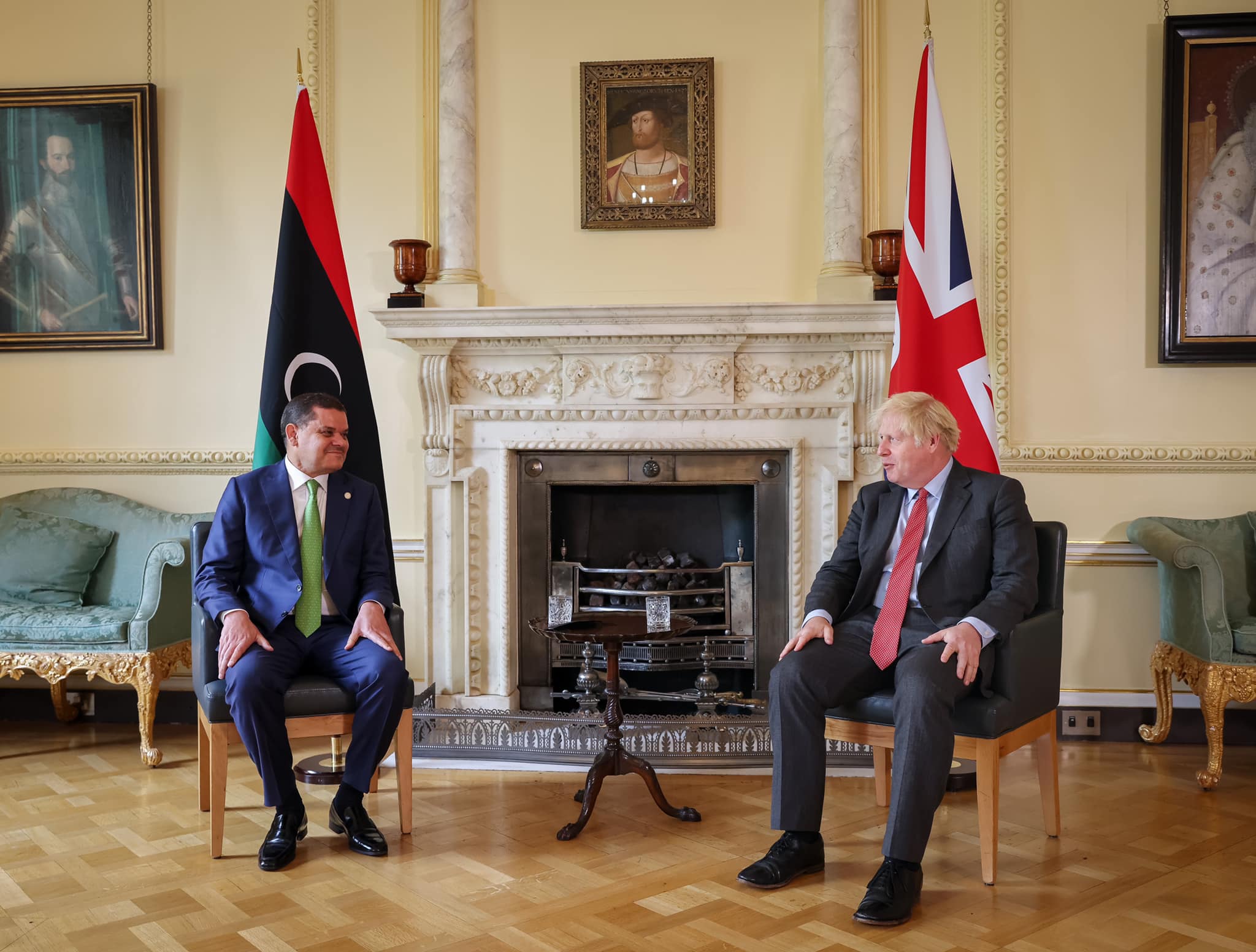 عقد رئيس حكومة الوحدة الوطنية السيد «عبدالحميد الدبيبة» اجتماعاً بناءًا مع رئيس الوزراء البريطاني السيد «بوريس جونسون» اليوم الخميس، وتناول اللقاء عمل حكومة الوحدة الوطنية المستمر لإعادة استقرار ليبيا وإعداد البلاد لإجراء انتخابات آمنة وحرة ونزيهة.