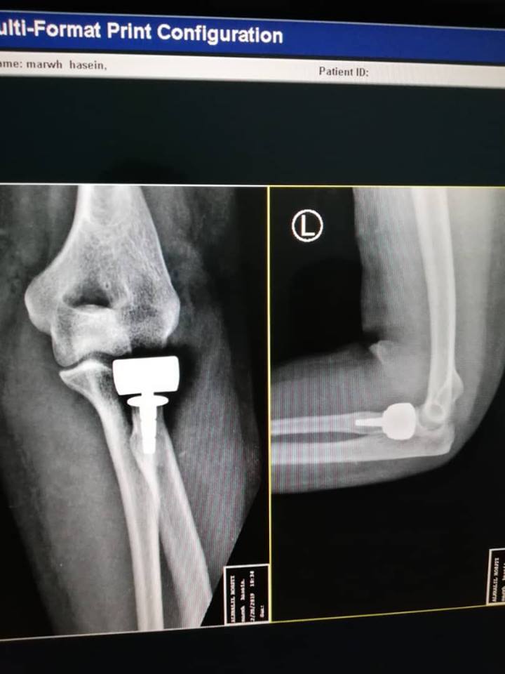 زراعة رأس صناعي لمريضة تعاني من كسر مركب في رأس عظمة الساعد