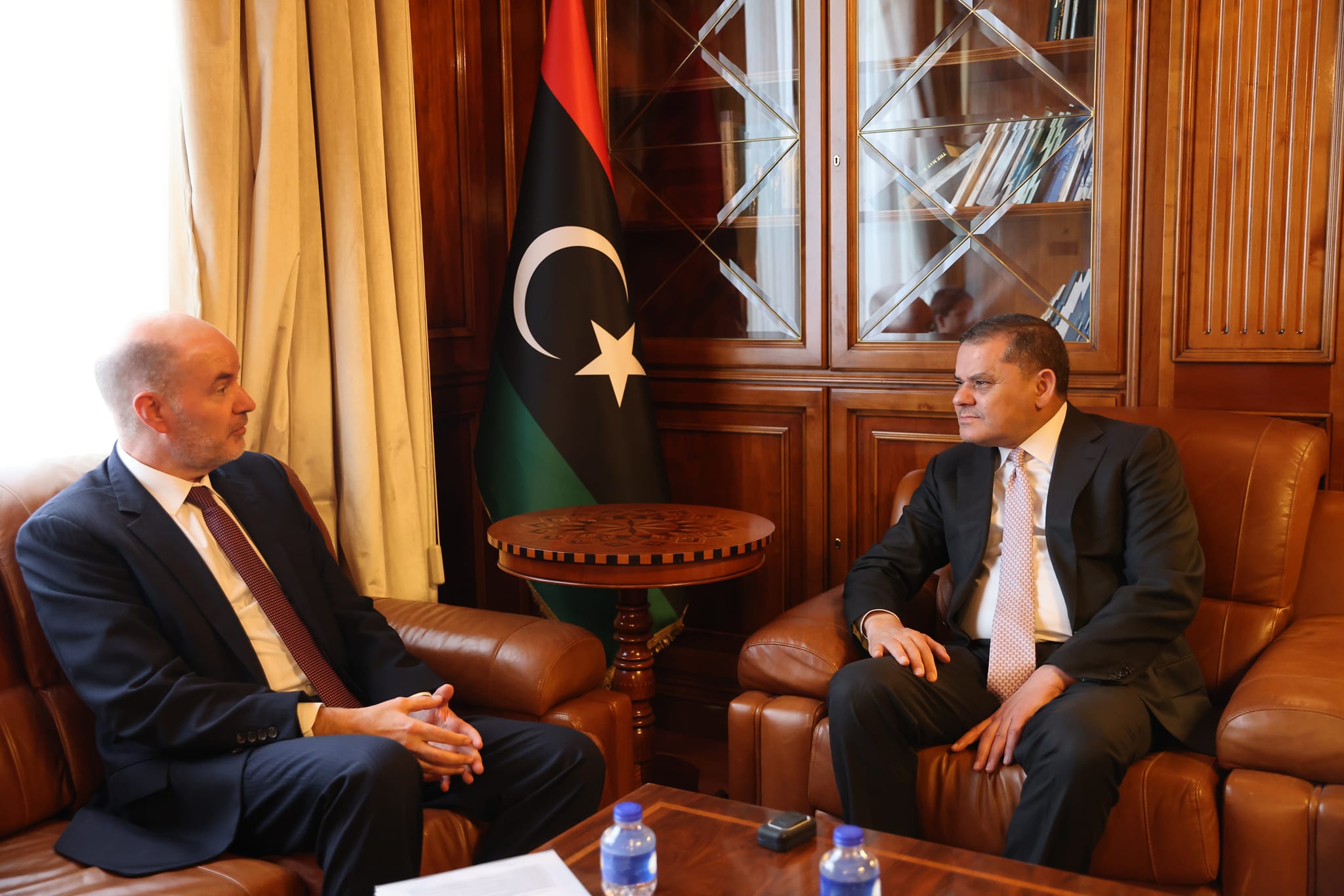 وبحث الدبيبة خلال لقائه السفير السويسري، تعزيز التعاون الاقتصادي المشترك بين البلدين، وخاصة في مجال الطاقة والغاز.