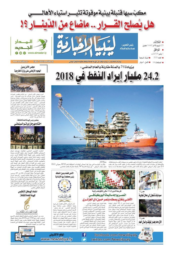صدر صباح اليوم الثلاثاء الاول من يتاير 2019 العدد 535 لصحيفة ليبيا الاخبارية والعدد حافل بعديد الاخبار واللقاءات والتحقيقات