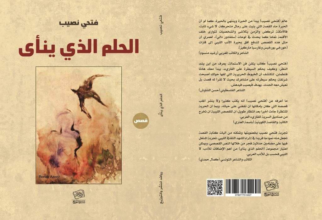 صدر للقاص الليبي فتحي نصيب مجموعته القصصية الثالثة بعنوان ( الحلم الذي ينأى) عن الدار المصرية ( روافد) للنشر والتوزيع ، من القطع المتوسط في مائة صفحة وستكون ضمن الكتب المشاركة بمعرض القاهرة الدولي للكتاب الذي سيفتتح بعد عدة أيام.