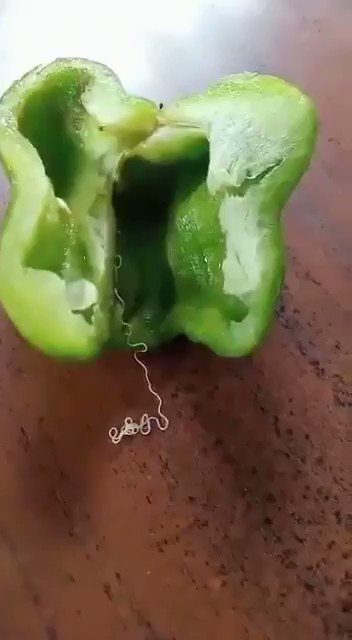 وبعد البحث في اليوتيوب والصفحات العلمية تبين بالفعل وجود هذا الكائن في الفلفل الأخضر.