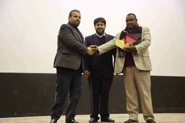 وبحضور المستشار السوداني بالسفارة عوض المعوض والقنصل بالسفارة حسن الحسيني حيث تكريم الفرق المشاركة في الملتقى بدرع مقدم من الهيئة العامة للثقافة.
