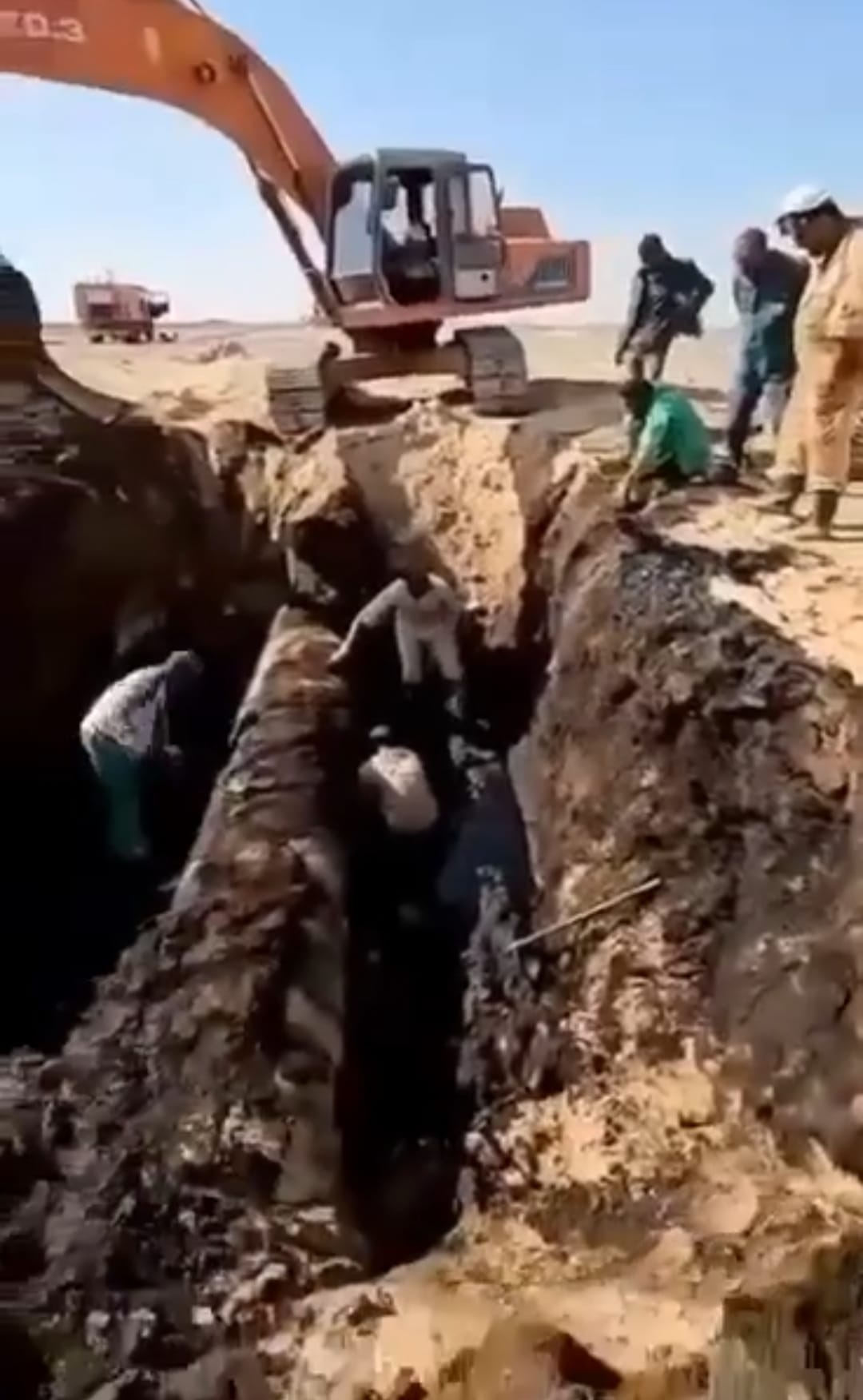 بعد الإبلاغ عن التسربين بخط الشحن الرئيسي 34 بوصة،بخط السرير ..طبرق بتاريخ 5\10\2023 بعد أن أصدر السيد بن شتوان تعليماته بتجهيز فرق الصيانة اللازمة بجميع معداتها.