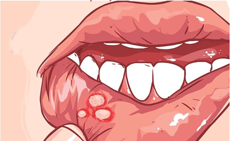 – ظهور بقع بيضاء خشنة الملمس على سطح اللسان أو داخل التجويف الفمي أو على اللثة