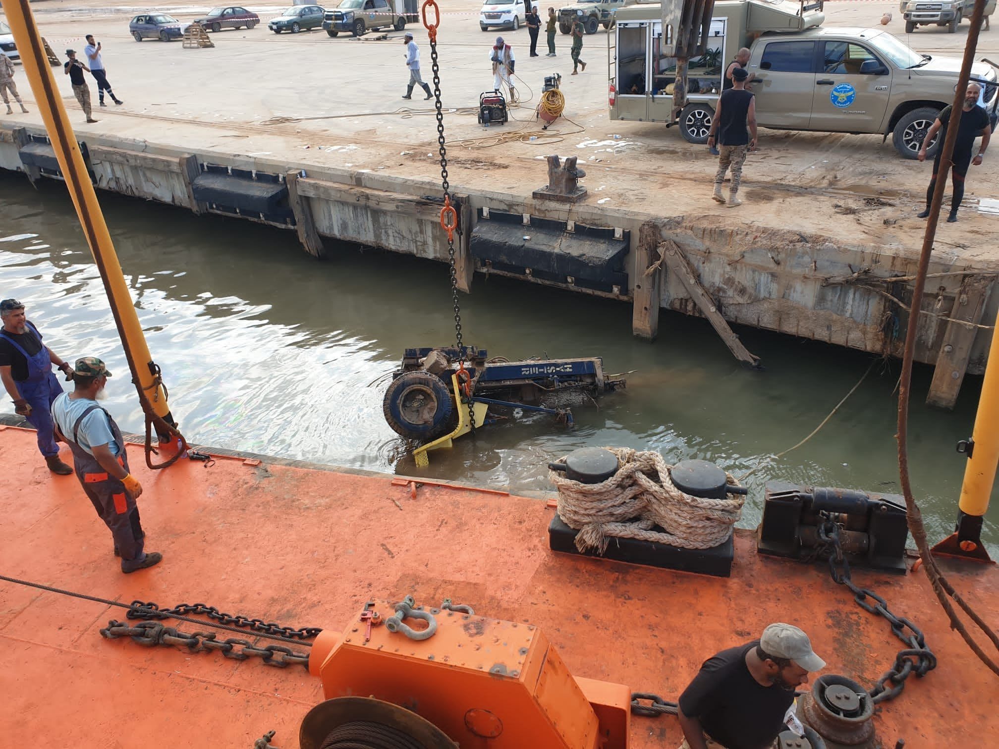 في هذا السياق وصلت منذ يومين القاطرة (أسد 47 ) إلى ميناء مدينة درنة البحري للمساعدة في جهود فرق الإنقاذ المختلفة ، ومن ضمن معدات هذه القاطرة الرافعة (صباح) أو مايعرف بالونش
