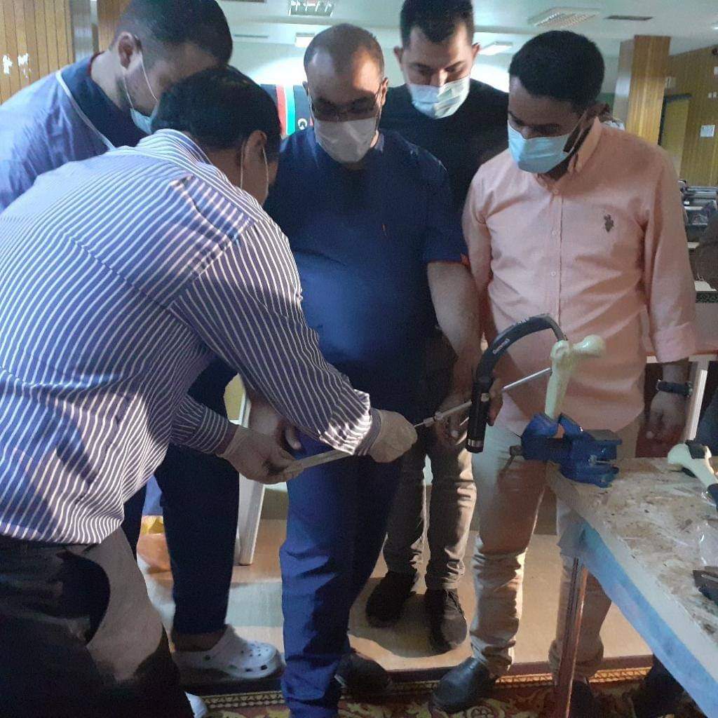 هذا و حضر جانب من الورشة مدير عام المستشفى الدكتور ” نبيل العجيلي “، و مشرف الشؤون العلمية والتطوير المهني لقسم جراحة العظام الدكتور ” فيصل المصراتي”، اللذان أشادا بالخطوة التي اتخذها قسم جراحة العظام للتعريف بهذه المعدات وكيفية استخدامها بطريقة صحيحة من اجل الحصول على أفضل النتائج من خلال الورشة العمل التي تساهم في صقل مهاراتهم .