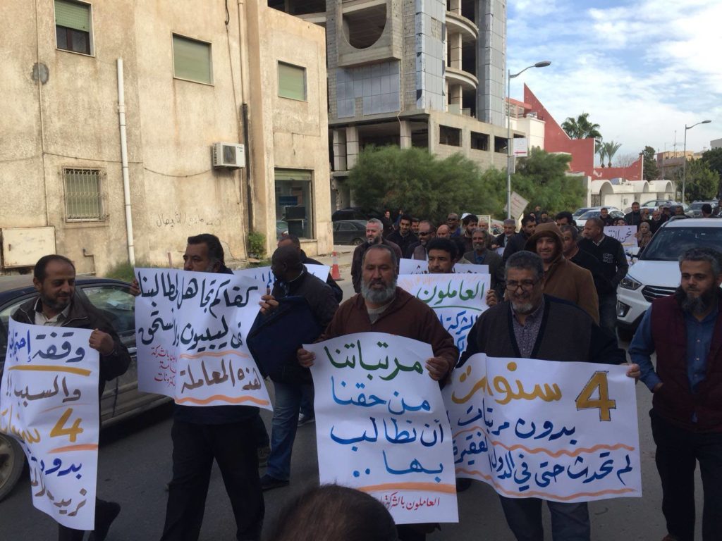 بمعية اللجنة العليا للشركات المتعثرة ، نفذ عدد من العاملين بهذه الشركات وقفة احتجاجية أمام مقر المجلس الرئاسي ، مطالبين بدفع مرتباتهم المتوقف صرفها منذ مايقرب من أربع سنوات .