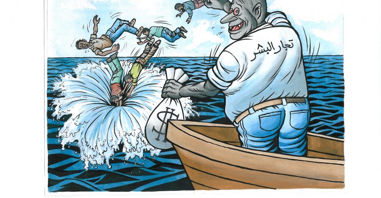 كريكاتير العدد 562 لصحيفة ليبيا الاخبارية تجار البشر