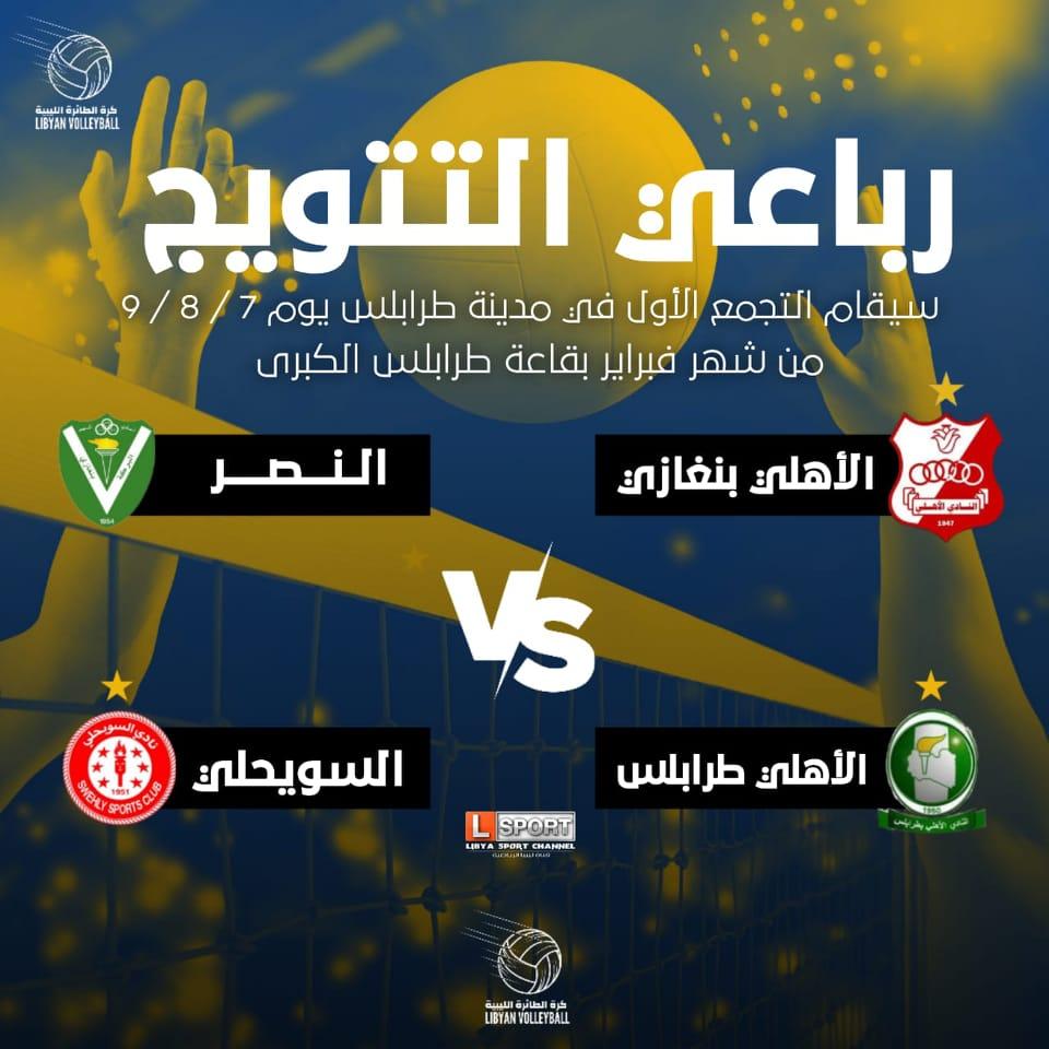 وسينطلق الرباعي يوم الثلاتاء 7 فبراير بمواجهة بين حامل اللقب السويحلي، والنصر، فيما يستضيف في اللقاء الثاني الأهلي طرابلس، الأهلي بنغازي.