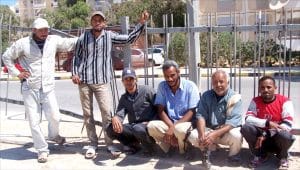 في أكثر من مكان بطرابلس وغيرها من المدن ، تجد اليد العاملة الأفريقية والعربية خلال الساعات الأولى من كل صباح بانتظار فرصة عمل ، أو صاحب عمل سبق التفاهم معه على إنجاز عمل ما . وكل منهم يستعرض مهنته على طريقته ، فهذا يضع أمامه انابيب بي بي أر كدليل على حرفته في مجال السباكة ، وثان يضع أمامه قطعة بلاط أو بورسيلين لتبيان إمكاناته في رصف الأرضيات بالبلاد أو تركيب السيراميك والبورسلين ، وآخر يضع أمامهبعض الأدوات الدالة على أنه ” أسطى ” تركيبات كهرباء منازل .