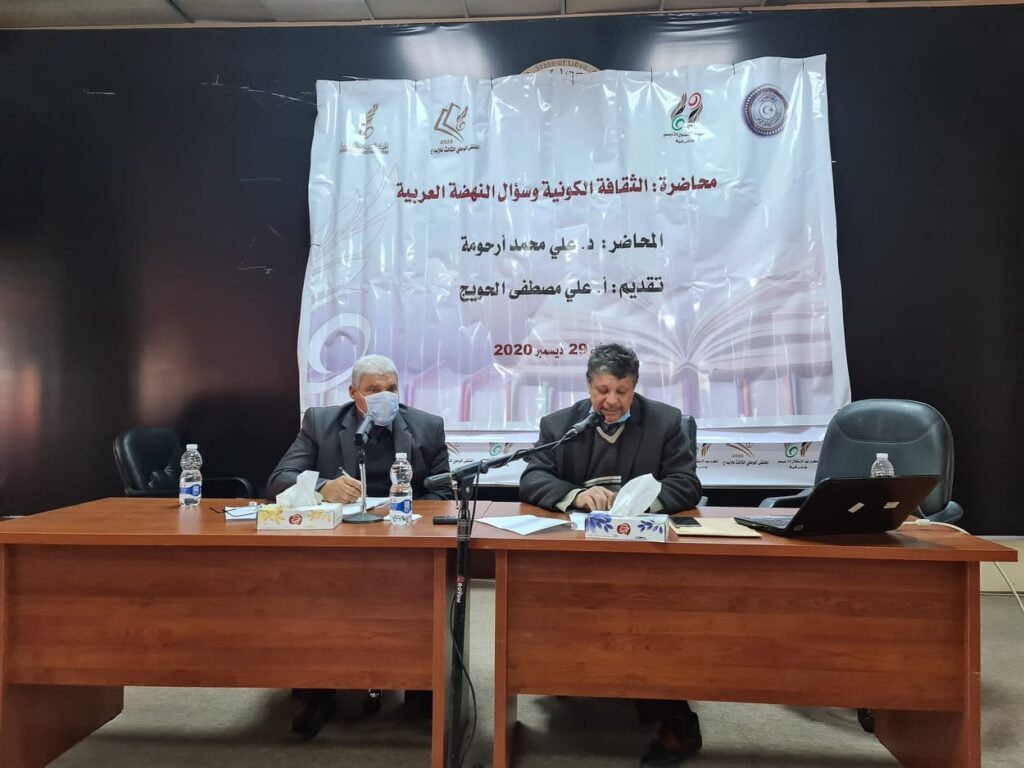 نظمت اللجنة الثقافية ضمن فعاليات الملتقى الثالث للإبداع اليوم الثلاثاء 29 ديسمبر2020 محاضرة بعنوان ” الثقافة الكونية وسؤال النهضة العربية ” ألقاها الدكتور علي محمد أرحومة، وذلك في قاعة عمر المختار بمعرض طرابلس الدولي, بإدارة الأستاذ علي الحويج، بحضور عدد من المثقفين والمهتمين.