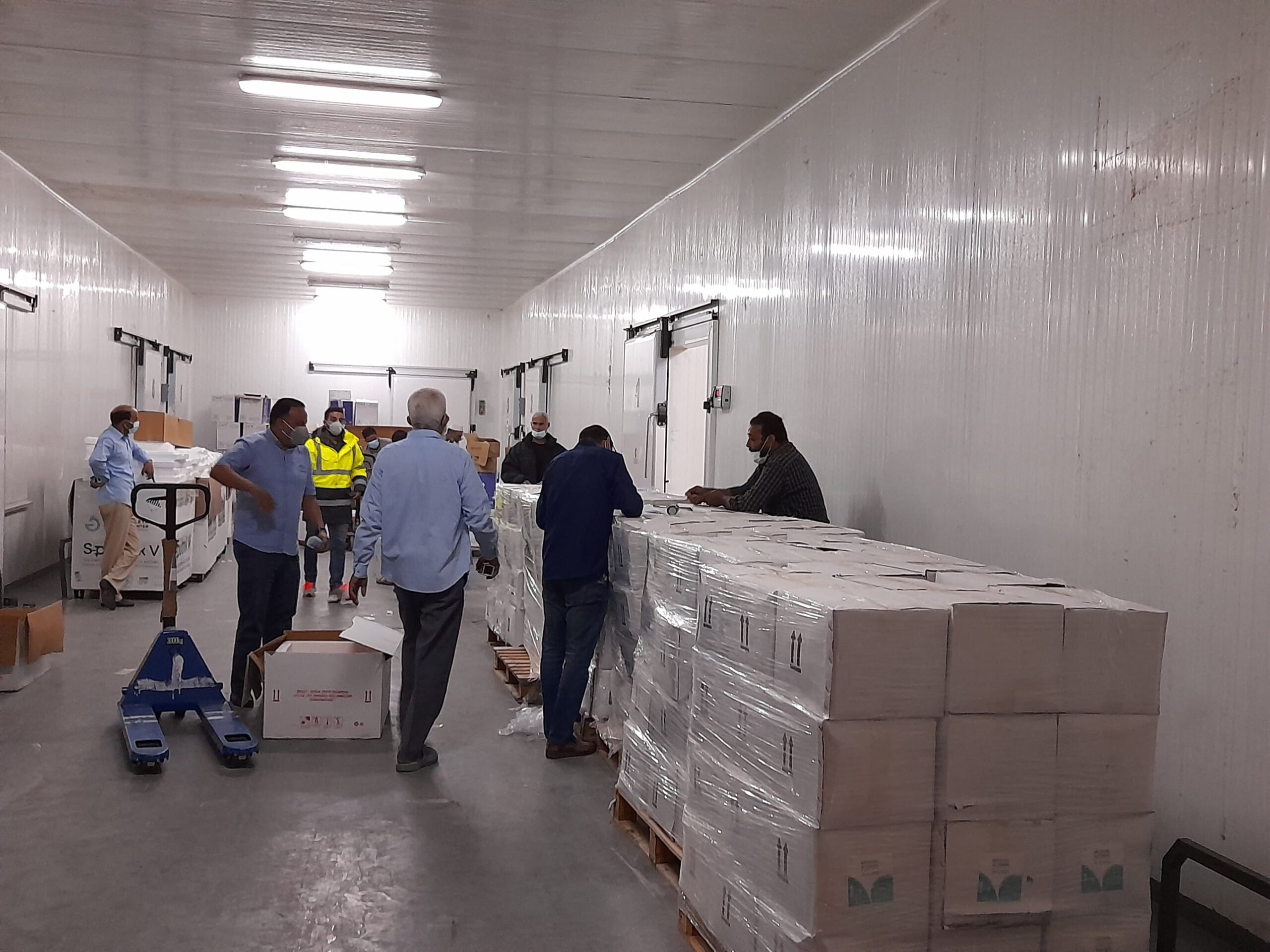 وحضر عملية الاستلام عدد من المسؤولين في الجهاز و مندوبي عن مركز الرقابة على الأغذية والأدوية ولجنة الفحص والاستلام بالجهاز التي قامت بتخزين شحنة اللقاح وحفظها بمخازن الحلقة الباردة إلى حين تسليمها للجهات المختصة بعد استلام نتائج التحاليل المخبرية اللازمة.