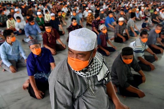 - الآلاف يؤدون صلاة الجمعة فى إندونيسيا “متباعدين” بالكمامات بسبب كورونا