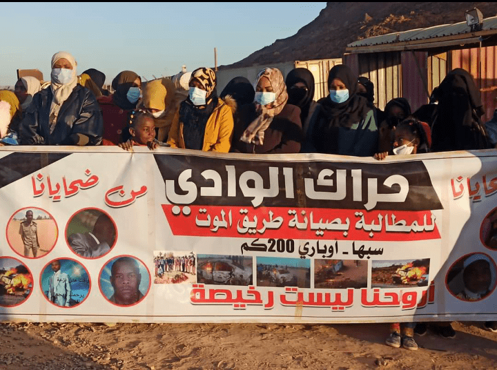 الناشطة المدنية آمنة عبدالسلام شاركتنا هي الأخرى برأيها وقالت: ” كنت مدعوة للمشاركة في هذا الحراك لكني لم أتمكن من الحضور لظروف صحية خاصة إلا أنني حاضرة معهم قلبا، فأنا إحدى المتضررات من هذا الطريق المتهالك الذي أصبح السفر والتنقل عبره طمعا في الوصول إلى مدينة سبها أو اجتيازها نحو مناطق أخرى أمرا في غاية التعقيد، فنحن نحتاج لثلاث ساعات تقريبا اليوم لنصل نتيجة للمطبات والطريق المتهالك، ناهيك عن المشقة التي نتكبدها والخسائر التي نتحمل وزرها فقط لأننا نعيش في الجنوب الذي نشتري فيه لتر البنزين بأضعاف سعره في بقية المدن والمناطق الليبية، وهنا نتساءل: أين نواب الجنوب؟ وأين نحن من الإصلاحات التي شملت طرق مصراتة وزليتن وغيرها يا ترى”.