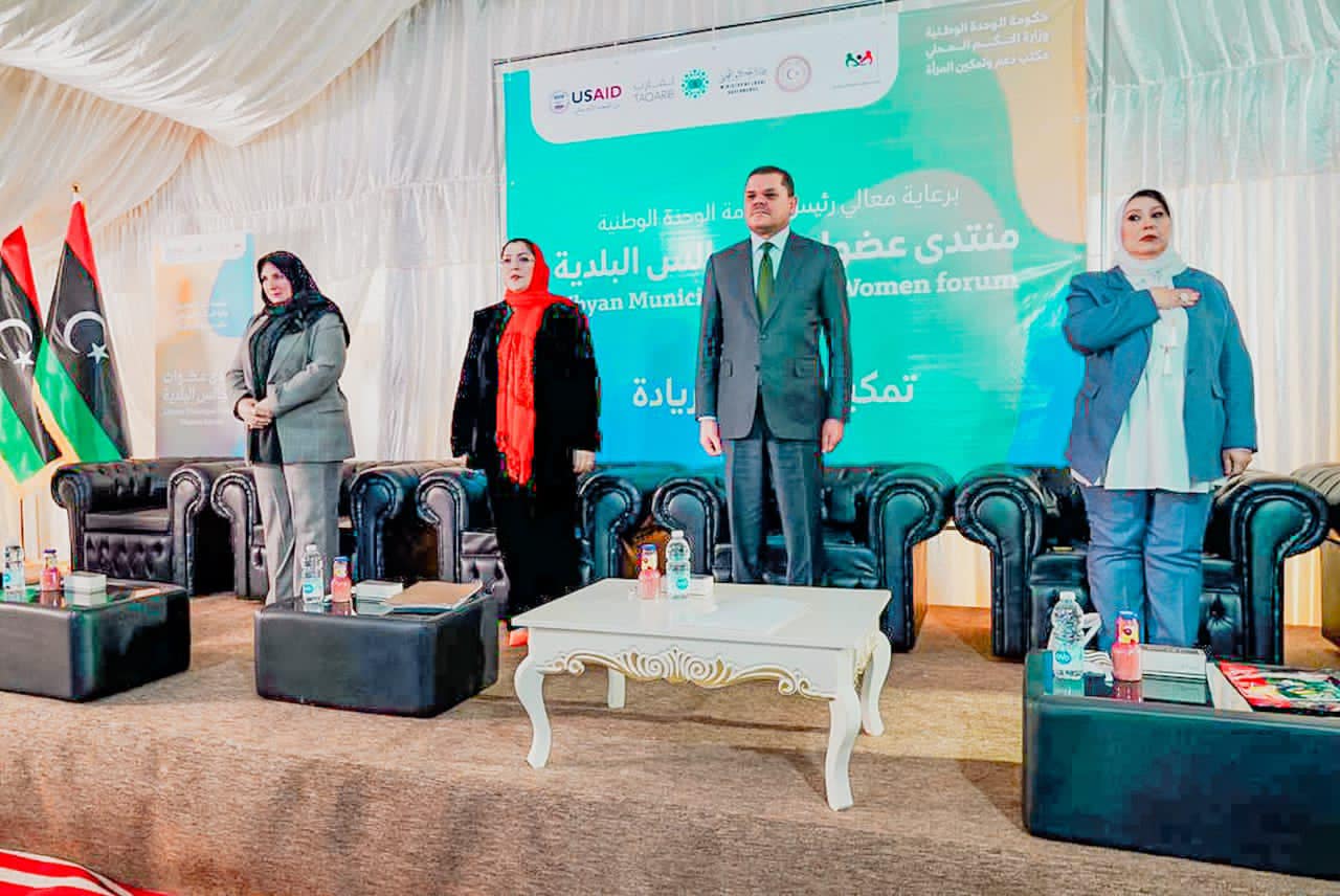 كما أعلن رئيس الوزارء بمناسبة انطلاقة هذا المنتدى عن صرف مستحقات أعضاء المجالس البلدية لسنة 2022م، وعبر عن حرص الحكومة لتنفيذ كافة الأنشطة التي تدعم حماية وتمكين المرأة والنهوض بها في المجتمع ، وأن هذا المنتدى هوا الانطلاقة الحقيقة للنهوض بالمرأة وفق أسس علمية سليمة تنسجم مع شريعتنا الحنيفة وموروثنا الاجتماعي ، مشيدأً بالجهود المبذولة من قبل وزارة الحكم المحلي في دعم مكاتب تمكين المرأة في كافة ربوع ليبيا.