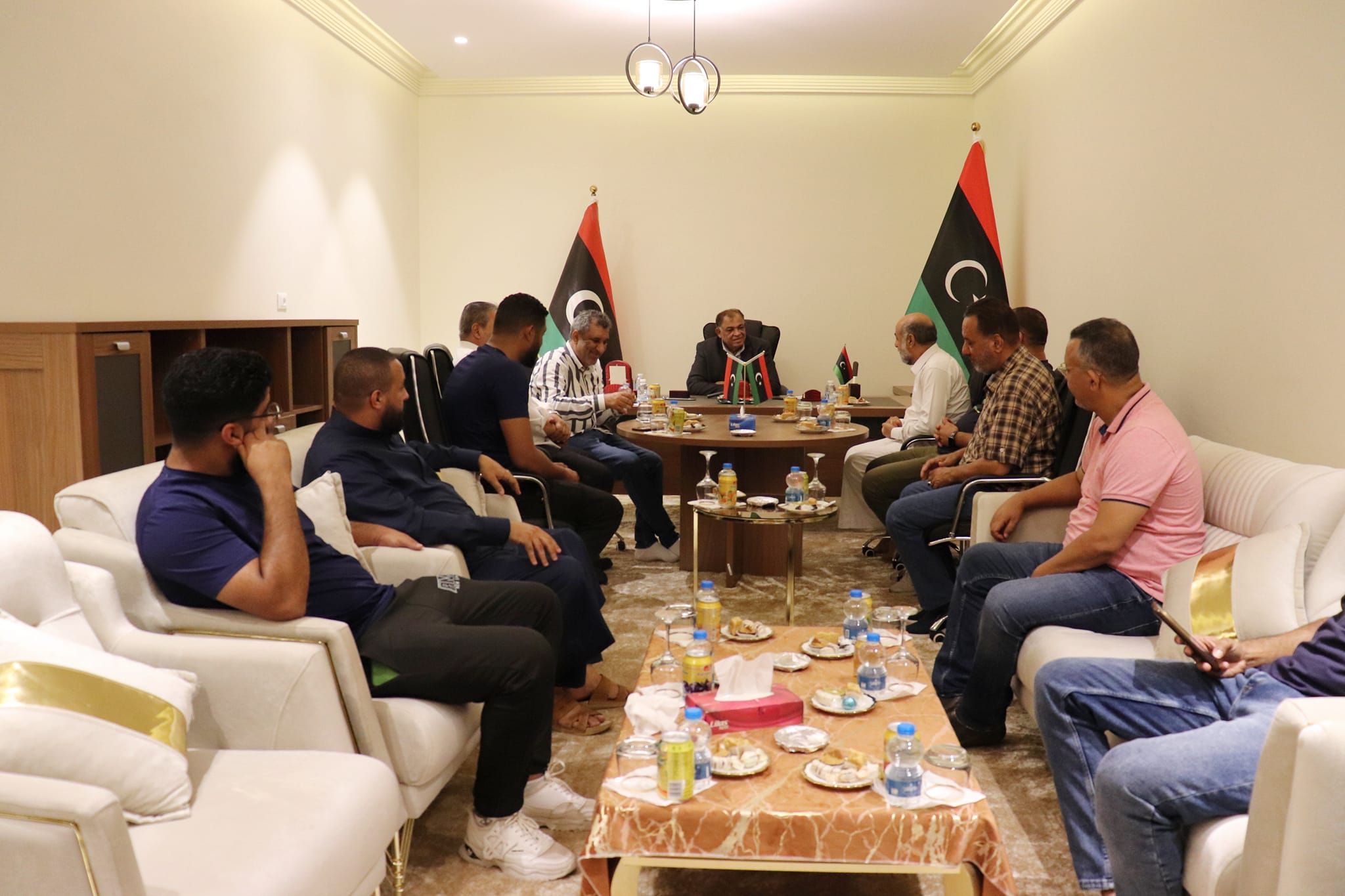 إستقبل معالي النائب الأول لرئيس مجلس الوزراء، ووزير الزراعة والثروة الحيوانية المُكلف الأستاذ “حسين اعطية القطراني”، بمقر إقامته بالعاصمة طرابلس، فريق الأنوار الرياضي ببلدية الأبيار، وأعضاء مجلس إدارة النادي بحضور السيد د “عادل الأوجلي”عضو مجلس إدارة إتحاد الكرة الليبي.