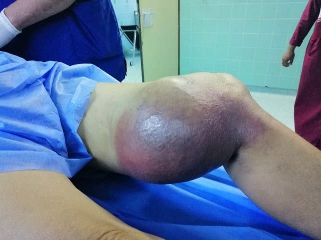 اتضح انه  يعاني من ورم حجمه 35سم ويضغط على الشرايين والأوعية الدموية قرر الفريق الطبي إجراء العملية بشكل عاجل والتي استمرت لأكثر من ثلاثة ساعات وكللت بالنجاح التام، وعقب العملية أحيل المريض لوحدة العناية وخضع للمتابعة من قبل الأطباء المناوبين إلى حين تحسن حالته الصحية.