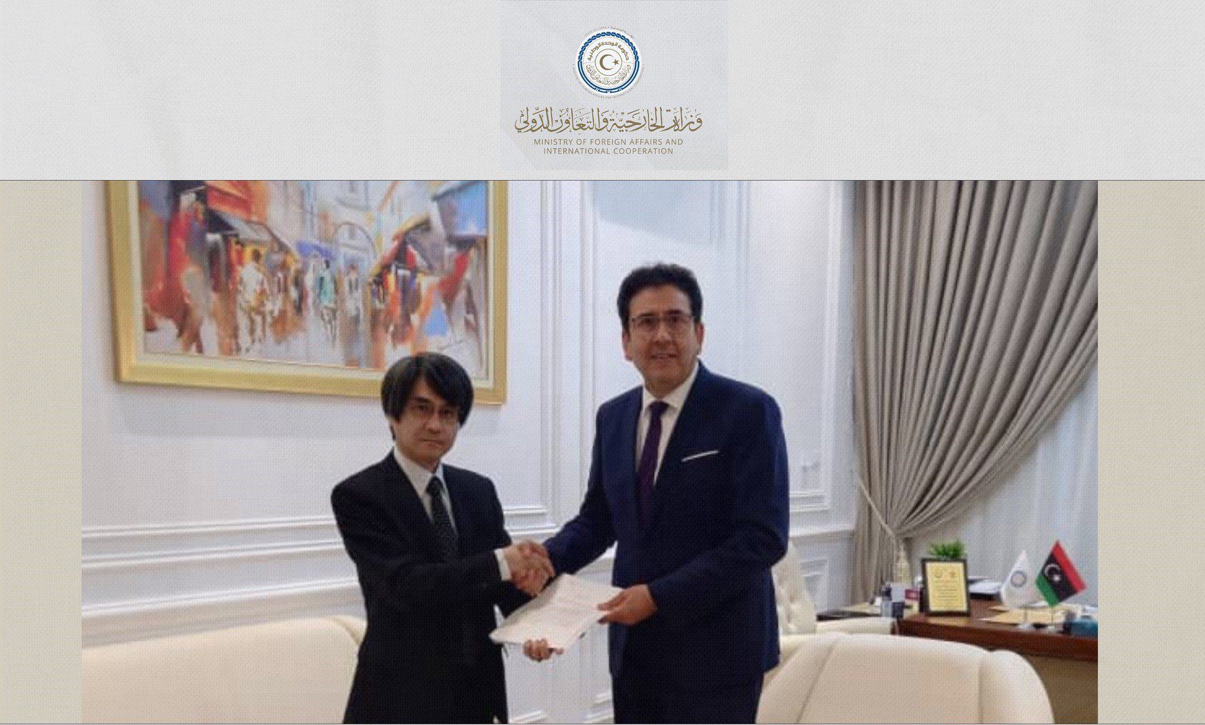 وزارة الخارجية تتسلم أوراق إعتماد سفير دولة اليابان لدى ليبيا.