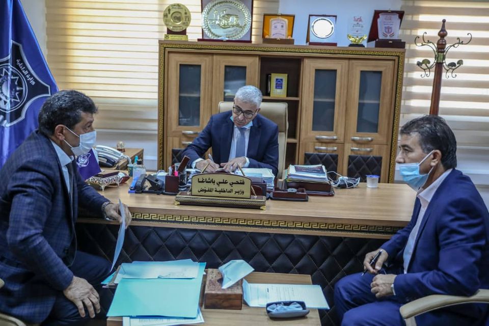 اجتمع وزير الداخلية المفوض السيد “فتحي باشاغا” صباح أمس الاثنين برئيس لجنة متابعة مذكرة التفاهم الموقعة ما بين وزارة الداخلية ومصرف ليبيا المركزي في مجال مكافحة الفساد وغسل الاموال وتمويل الإرهاب عميد “عبدالحميد الغزالي” وبحضور عضو اللجنة عقيد “جمال المزوغي”.