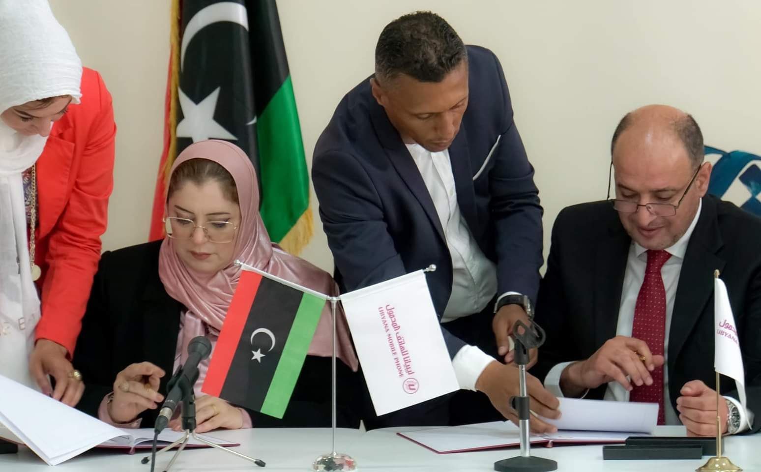 ووقعت الاتفاقية وزيرة الدولة للشؤون المرأة السيدة “حورية طرمال” مع رئيس مجلس إدارة شركة ليبيانا للهاتف المحمول السيد “عبد المنعم الحجاجي”.