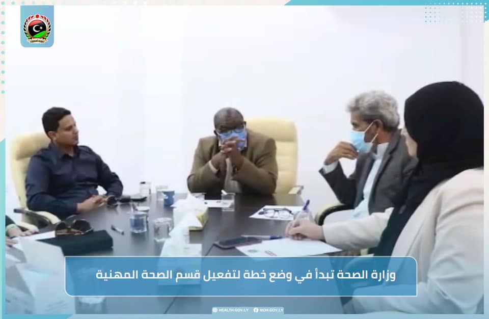 اجتمع صباح اليوم بمقر ديوان وزارة الصحة بالمنطقة الشرقية كلًا من الأستاذ/ مرعي الجازوي عضو الديوان، والدكتورة/ فائزة الهواري مدير مكتب الرعاية الصحية الأولية بالديوان، والأستاذ/ مرعيه الدرسي مدير مكتب المالية بالديوان، والدكتور/ عمر السوداني متخصص في مجال طب الأسرة والمجتمع، والدكتور/ صالح الفائدي عضو هيئة تدريس في قسم طب الأسرة والمجتمع بكلية الطب البشري جامعة بنغازي، والدكتورة/ إيمان العقيلي عضو هيئة تدريس في كلية الصحة العامة قسم إدارة صحية؛ وذلك للبدء بوضع خطة لتفعيل قسم الصحة المهنية التابع لأقسام الرعاية الصحية الأولية بالدولة الليبية.