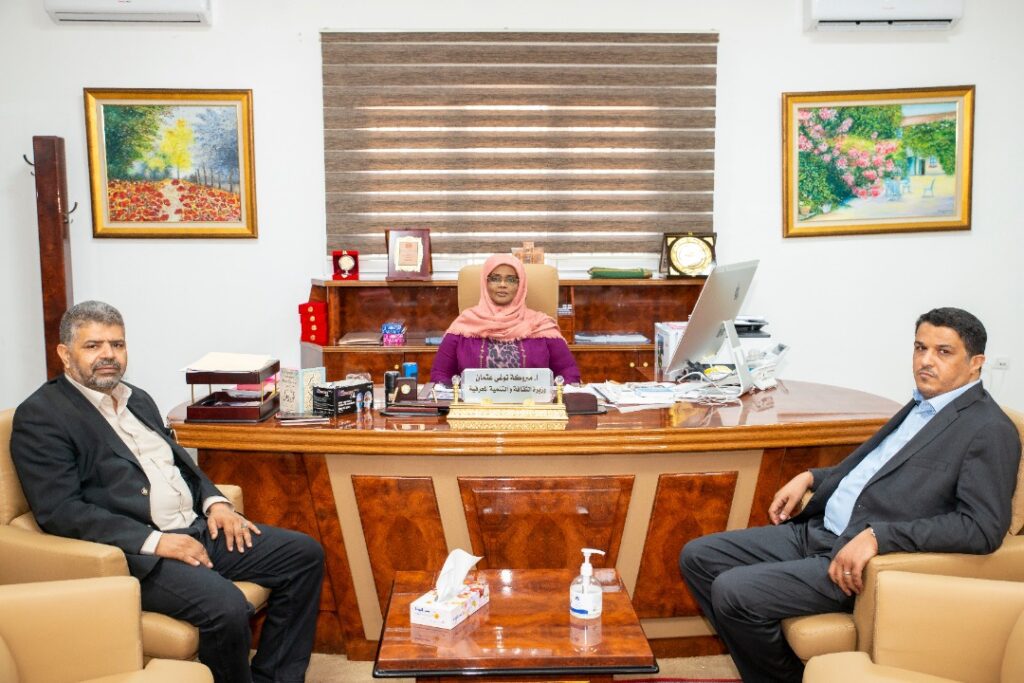 التقت وزيرة الثقافة والتنمية المعرفية الأستاذة مبروكة توغي، خلال الأيام الماضية، بمكتبها بديوان الوزارة بطرابلس، النائبين إبراهيم مصباح و علي العيساوي