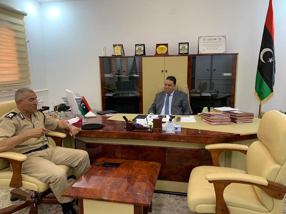 التقي وزير العمل والتأهيل بحكومة الوحدة الوطنية “م.علي العابد الرضا” صباح اليوم بمكتبه رئيس مصلحة الجوازات والجنسية وشؤون الأجانب  اللواء “يوسف مراد” حيث تمت التطرق خلال اللقاء إلى مناقشة آلية تنظيم سوق العمل عن طريق اللجنة المشكلة بقرار السيد الوزير ؛ كما أشاد السيد الوزير بالدور الذي تقوم به المصلحة فى إنجاز وتسهيل إجراءات تأشيرات الدخول والإقامة للعمالة على كامل التراب الليبي والتنسيق الفعال مع الإدارات والمكاتب المختصة بالوزارة مؤكدا على أهمية استمرار هذا التعاون والتنسيق لتنظيم سوق العمل وملف العمالة الأجنبية بشكل عام .