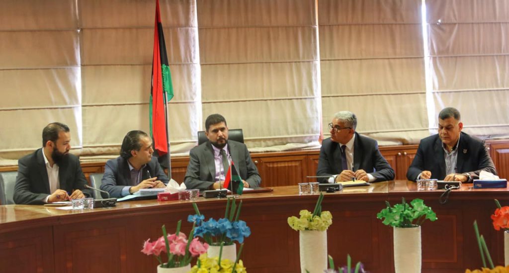 عقد السيد وزير المالية المفوض فرج أبو مطاري ظهر اليوم الأربعاء الماضي بمقر ديوان الوزارة اجتماعاً مع السيد وزير الداخلية المفوض فتحي باشاغا ، وبحضور عدد من مدراء الإدارات والمكاتب بالوزارتين ، جرى خلاله استعراض المختنقات التي تواجه سير العمل المالي بوزارة الداخلية وخاصة فيما يتعلق بالباب الأول ” بند المرتبات ” .