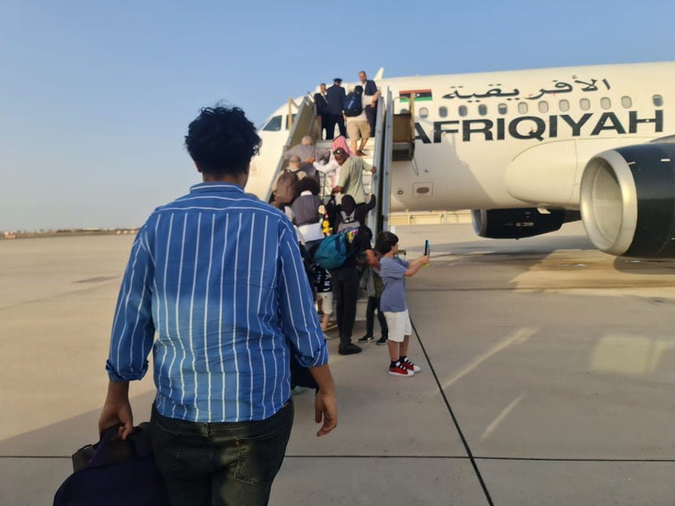 وصلت إلى مطار معيتيقة بالعاصمة طرابلس مساء اليوم الثلاثاء طائرة الخطوط الأفريقية قادمة من مدينة جدة السعودية تحمل على متنها 105 شخصا من أفراد الجالية الليبية الذين تم اجلائهم من السودان.