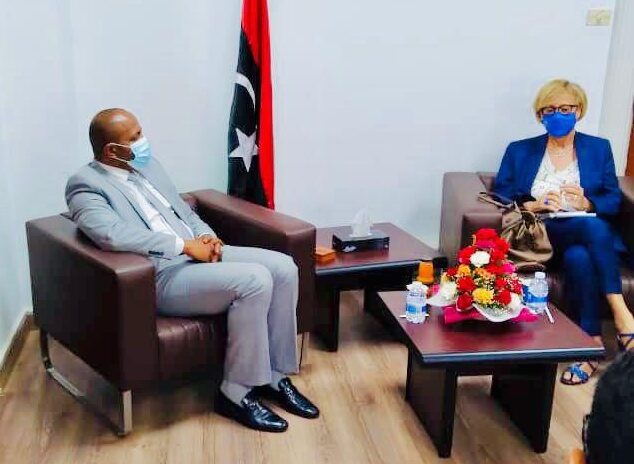 التقى وكيل وزارة الخارجية والتعاون الدولي لشؤون التعاون والمنظمات السيد عمر كتي ، في اجتماع مع السيدة “ناتالينا سي” رئيس بعثة اليوبام لدى ليبيا والذي صباح اليوم الأحد الموافق 1 / 8 / 2021 وذلك بمكتب وكيل وزارة الخارجية والتعاون الدولي لشؤون التعاون والمنظمات بوزارة الخارجية بالعاصمة طرابلس.