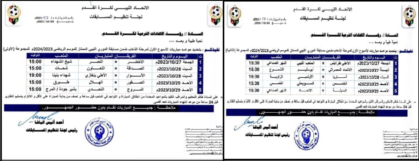 تنطلق يوم الجمعة القادم ، مباريات الدوري الممتاز لكرة القدم للموسم الرياضي 2023 - 2024 . وأصدرت لجنة…
