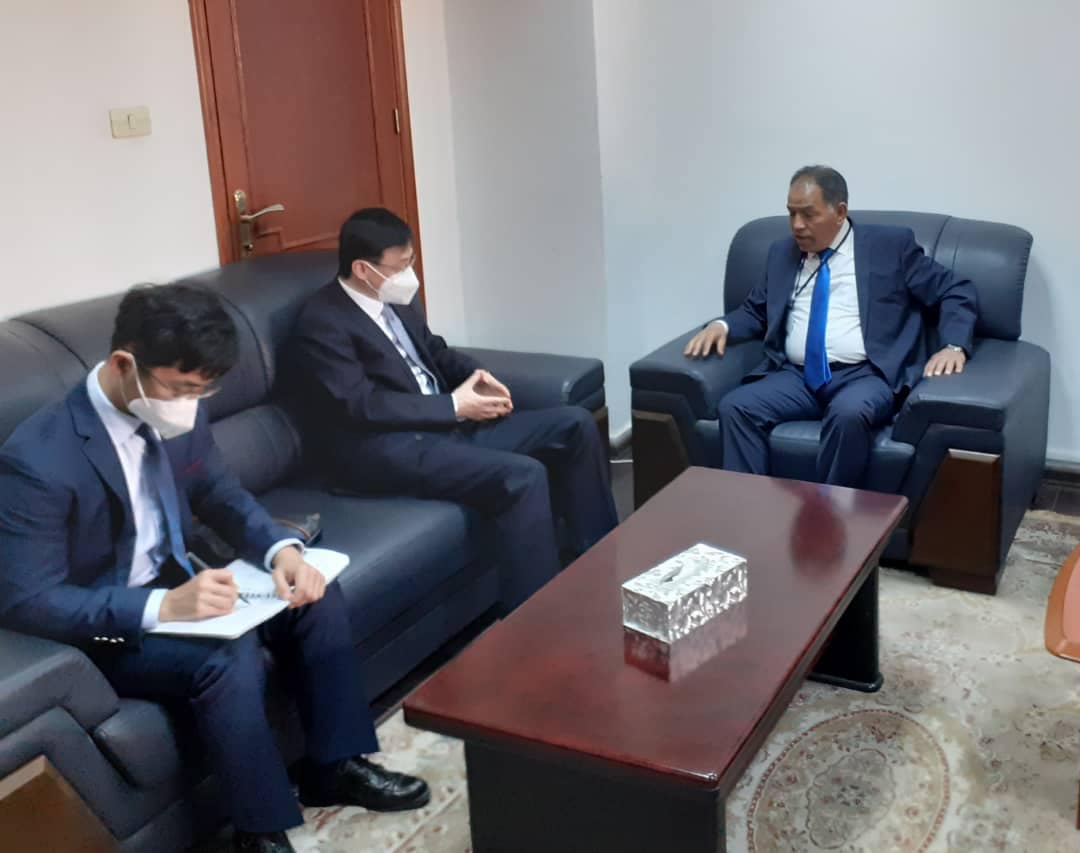 طرابلس | 29 مارس 2022 مدير إدارة التعاون الدولي السيد “أحمد الذيب” يستقبل بمقر وزارة الخارجية "وانغ تيشمن" القائم بأعمال…