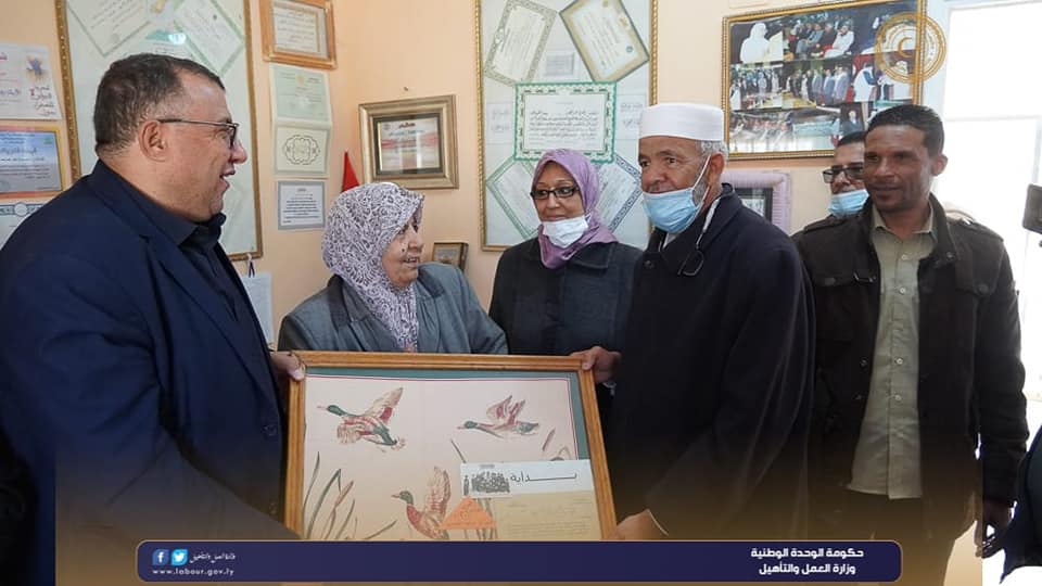 كرمت وزارة العمل والتأهيل المعلمة "زهرة الخير" لمجهوداتها ودورها في تعليم المرأة ببلدية الجفرة في عدة حرف مهنية وذلك على هامش…