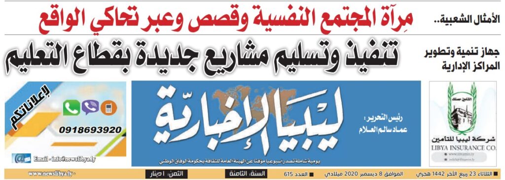عن الهيئة العامة للثقافة يصدر صباح غدٍاً الثلاثاء 8 ديسمبر 2020م العدد (615) من صحيفة ليبيا الإخبارية العدد كالعادة مليء…