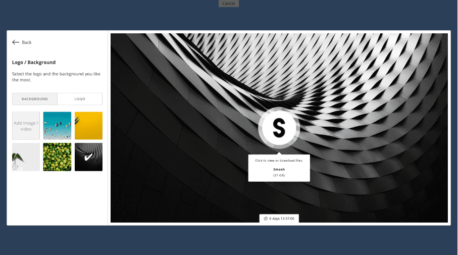 ل انتهينا؟ طبعًا لا، حيث تدعم Smash أيضًا خيار تخصيص صفحة تنزيل الملفات، وذلك باستخدام شعار وصور ومقاطع فيديو من اختيار المستخدم نفسه، كما وأن الخدمة خالية من أي إعلانات مزعجة.