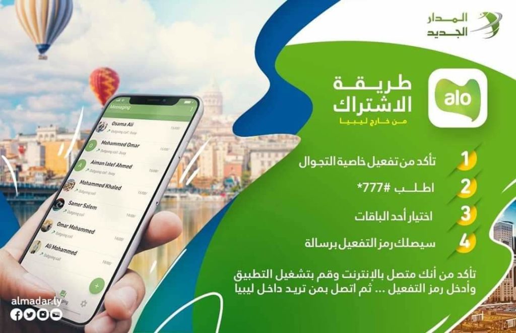 للإشتراك في آلو ليبيا ALO LIBYA عليك إتباع الخطوات التالية:_ 1- تأكد من تفعيل خاصية التجوال. 2- اطلب #777*. 3-…