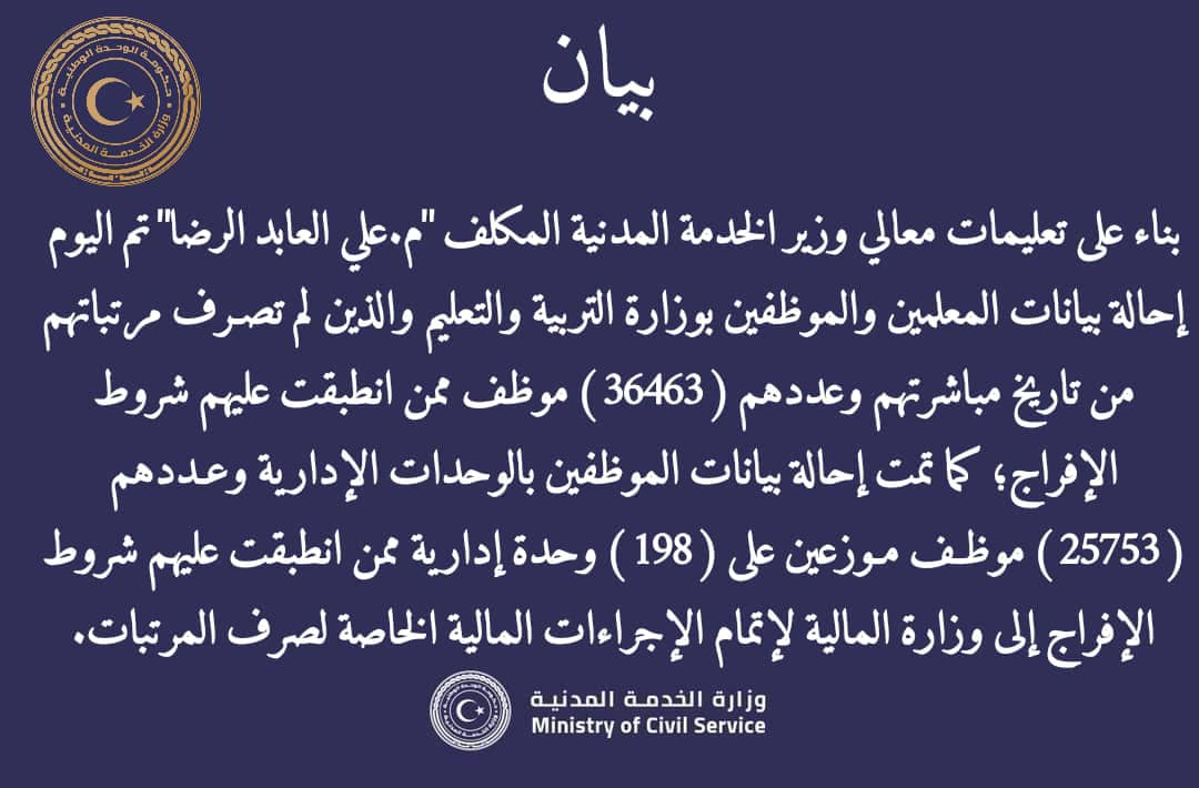 أعلنت وزارة الخدمة المدنية في بيان أمس عن الإفراج عن أكثر من 62 ألف مرتب لموظفين يتبعون القطاعات العامة في…